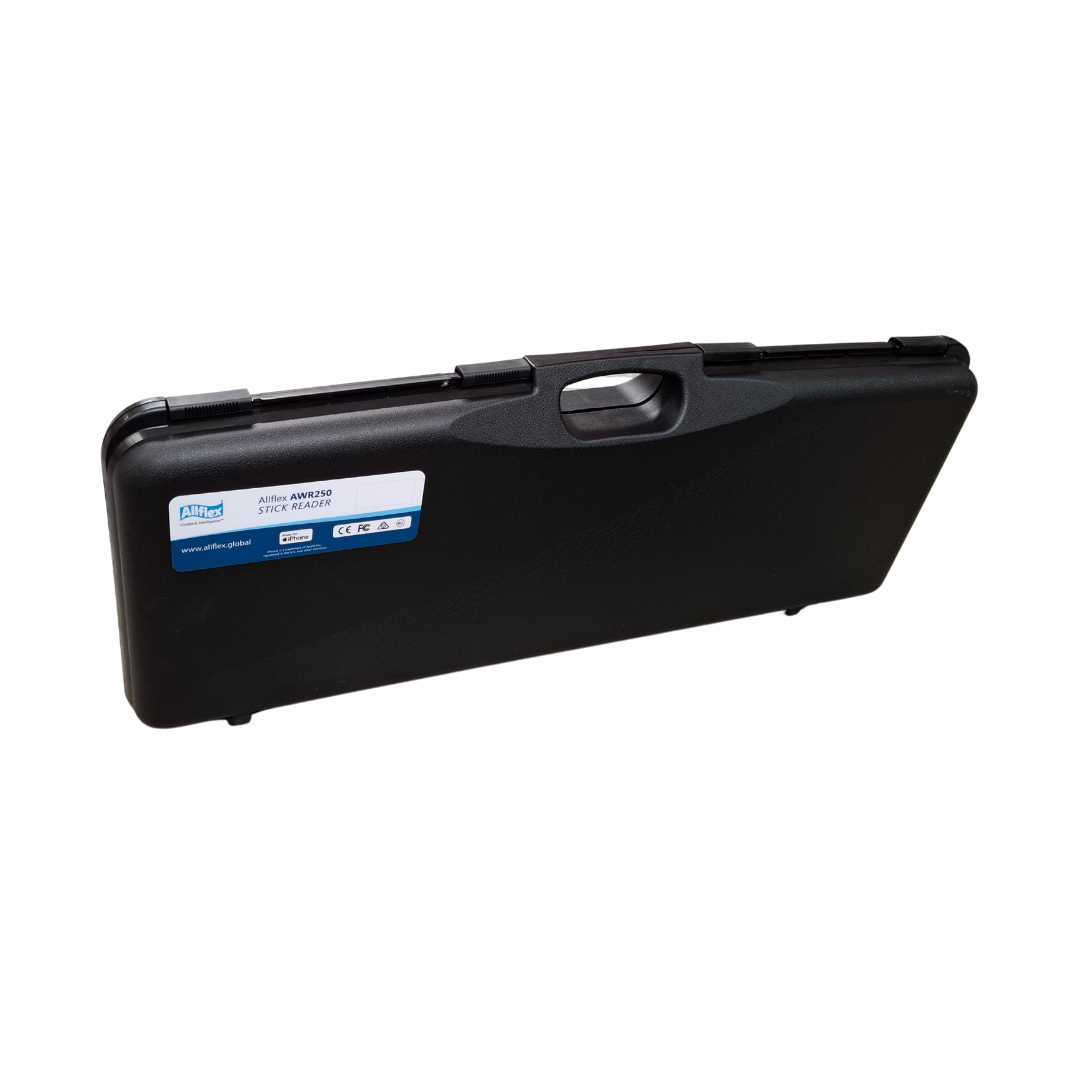 Caixa rígida de proteção e transporte para o leitor RS420. Interior com compartimentos moldados para segurança do equipamento.