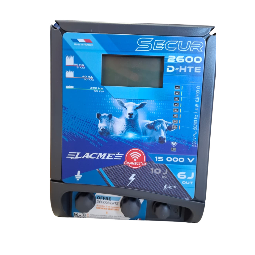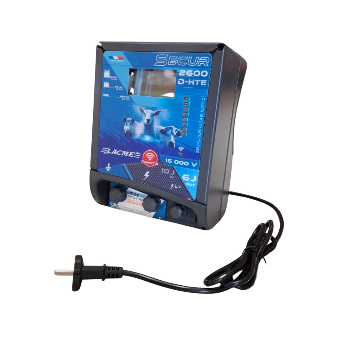 Eletrificador Secur 2600, potente e seguro, adequado para cercas de comprimento médio e exigentes.